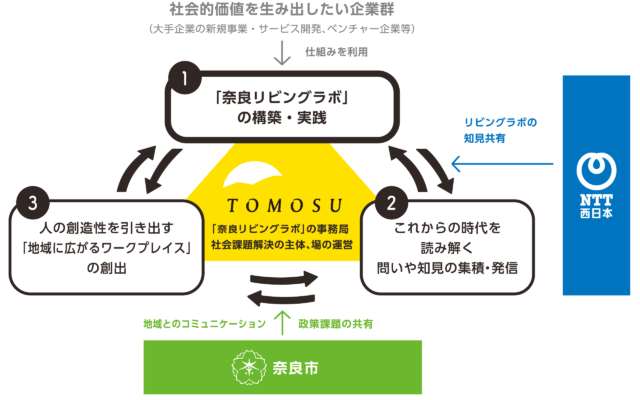 TOMOSU、奈良市、NTT西日本による新しい共創の仕組みです。